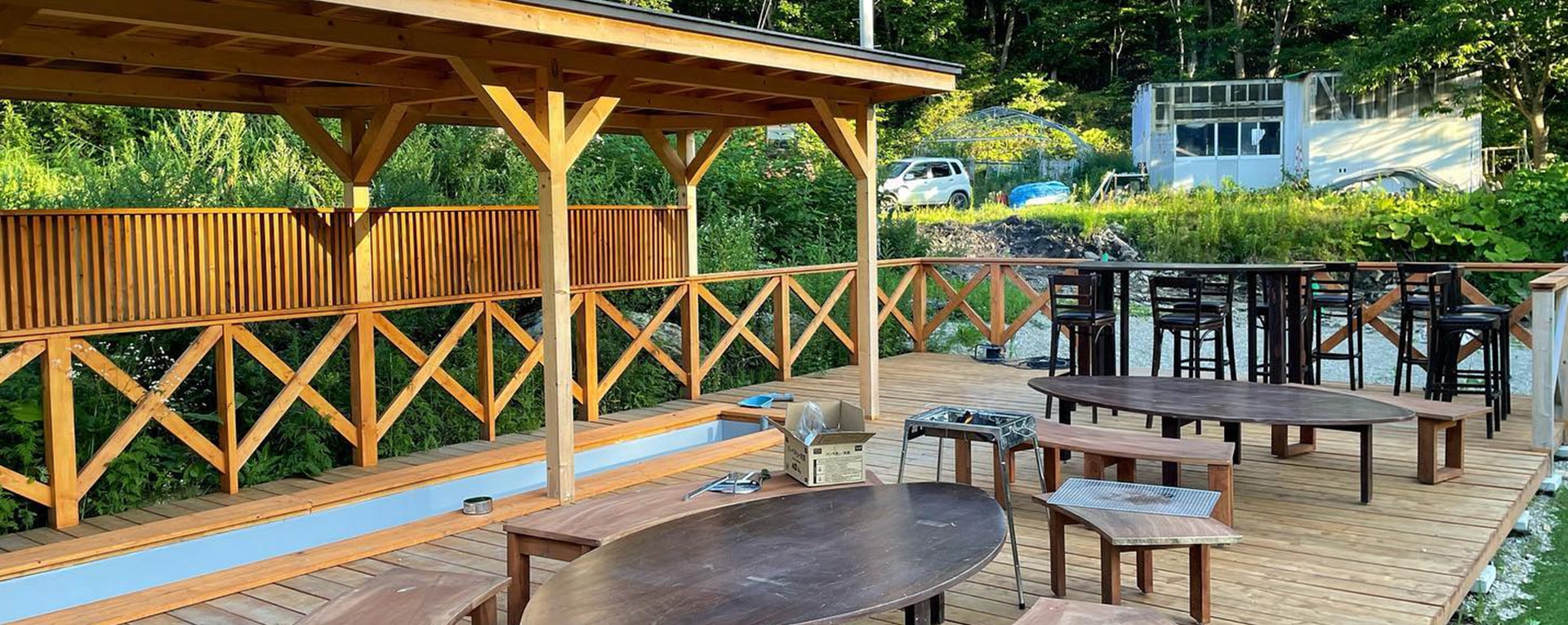 足湯入り放題、テント張り、BBQなど多目的にご利用下さい。